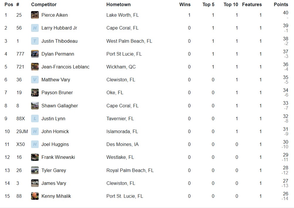 HENDRY 2026 IMCA MOD LITES POINTS IMCA MOD-LITES as of 1-17-26 IMCA MOD LITES DIVISION B as of 11-08-2025